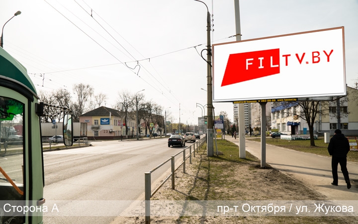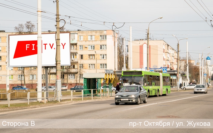 Конструкция расположена на проспекте Октября около остановки ОАО «Татьяна» по направлению движения к областной больнице и ГГТУ им. П.О. Сухого. Здесь оживлённое автомобильное движение.