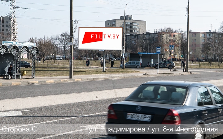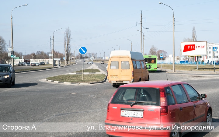 Билборд расположен в микрорайоне Западный в направлении движения к мосту в микрорайон Сельмаш. Это наиболее крупный перекрёсток в этом районе. Данный билборд трёхсторонний. Рядом находится магазин Евроопт, который был одним из первых в Гомеле. В своё время это был самый крупный магазин Евроопт, однако до сих пор он пользуется большой популярностью. Это направление одно из простых и быстрых для того что бы попасть из микрорайона Западный на Сельмаш.