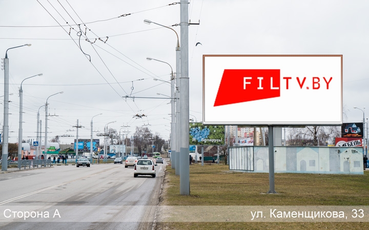 Конструкция расположена по ул. Каменщикова, на подъезде к «Прудковскому рынку». Также здесь находится известный торговый центр на «Огоренко, 33», Эконом-Маркет, БПС-Сбербанк, ХКБанк, «ТехноЭконом». Прямо перед билбордом остановка «Огоренко».
