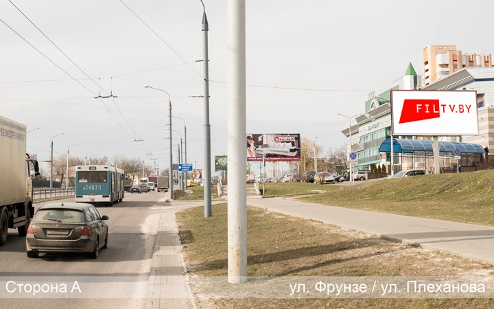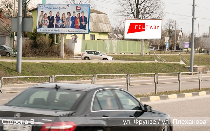 Рекламный щит расположен напротив главных управлений банков «Беларусбанк» и «БПС-Сбербанк», на улице Фрунзе перед «ЗИПом», одним из главных перекрёстков г. Гомеля. Билборд расположен после съезда с моста через реку Сож, со стороны Новобелицы. На этом участке наблюдается оживлённое автомобильное движение, поскольку это основное направления для того что бы попасть из Новобелицы и нового 104 микрорайона г. Гомеля в центр города.