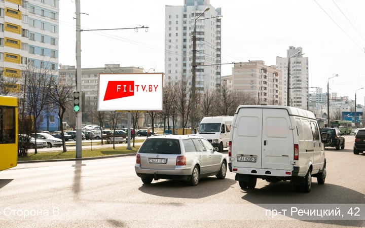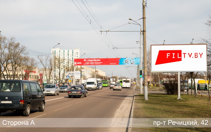 Двусторонний рекламный столб, освещаемый в ночное время, находится на одном из главных городских проспектов, в западной части города Гомеля. Данное месторасположение является крайне выгодным по нескольким причинам: крупный жилой микрорайон, эффективное транспортное сообщение (легковой, грузовой и все виды общественного транспорта), перспективное окружение (наличие крупных торговых центров, образовательных учреждений и спортивно-развлекательных объектов). Благодаря хорошей обзорности билборда, Ваша рекламная компания будет замечена большим числом потенциальных клиентов и потребителей. Сторона А работает в направлении к центру города.