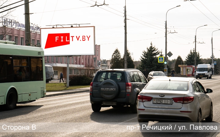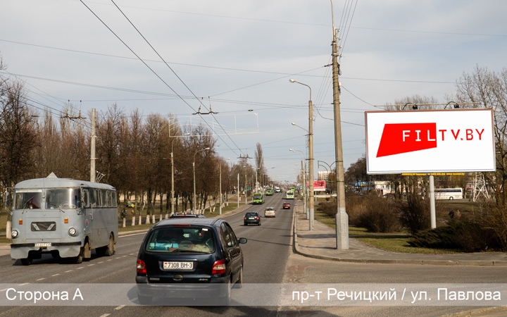Двусторонний билборд расположен на Речицком проспекте, возле ДК «Фестивальный».